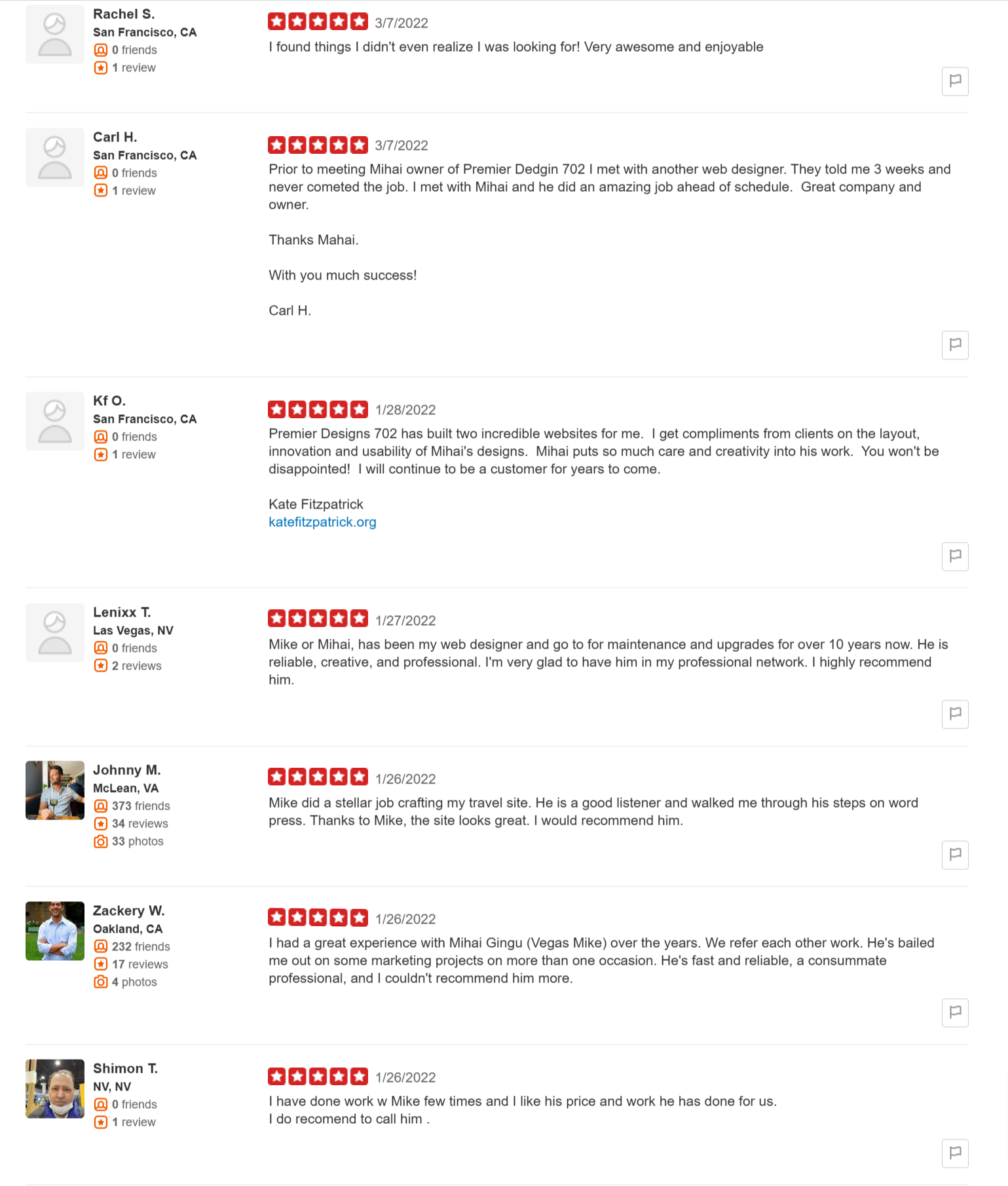 View more of Mihai’s website creator reviews from previous clients below! Welcome to Premier Designs 702, where quality web design meets exceptional service. Our website creator reviews showcase the dedication and expertise we bring to every project, helping businesses grow across Las Vegas and beyond.